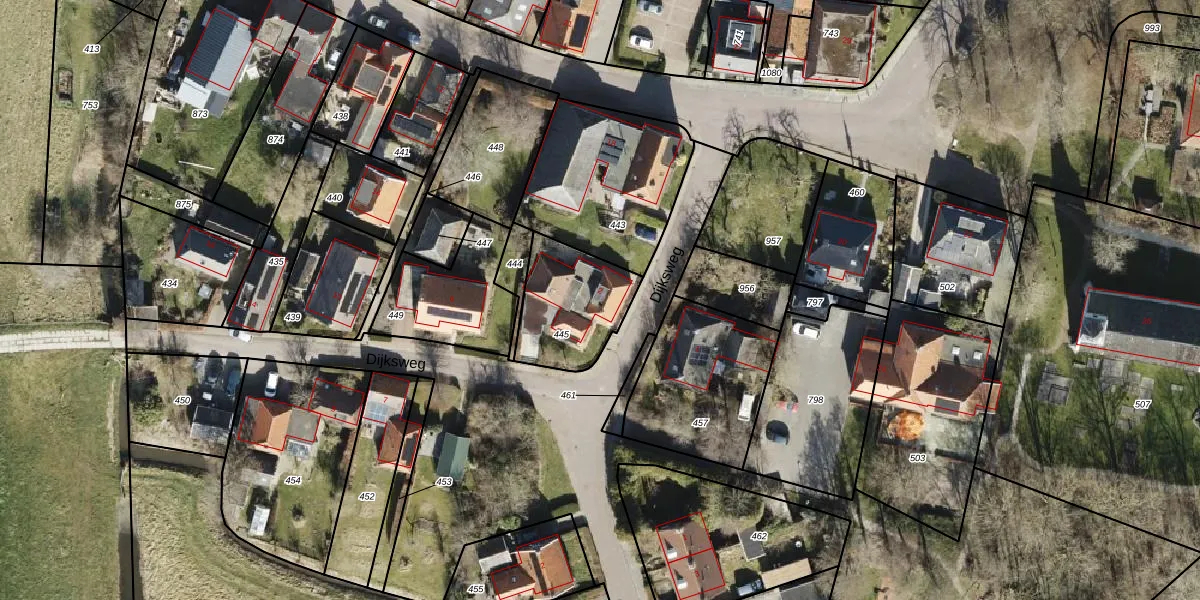Het perceel waarop Dijksweg 2 staat heeft een oppervlakte van 327 m². Dit is een groot perceel. De perceeloppervlakte wordt geregistreerd door het Kadaster. Gedetailleerde informatie over de maten van dit perceel kunt u vinden in het rapport Kadastrale kaart met maatvoering van Dijksweg 2.