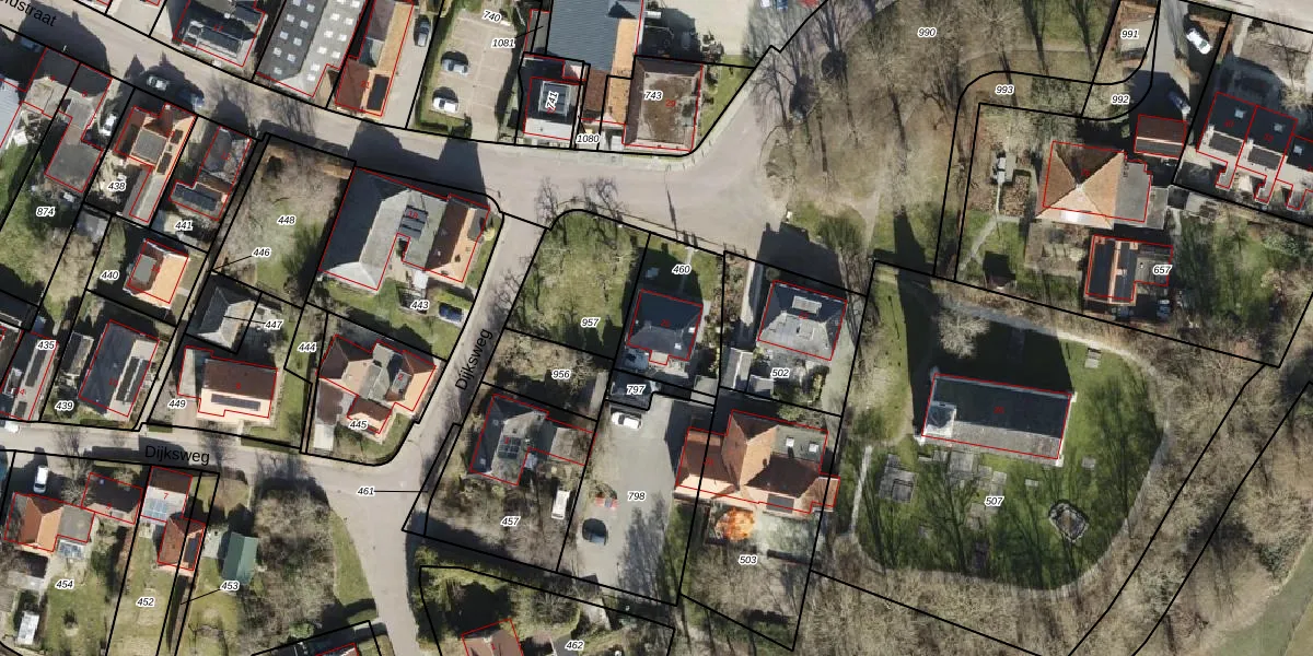 Gebruik de zoekbalk of klik op een perceel voor informatie over de adressen binnen dit perceel.