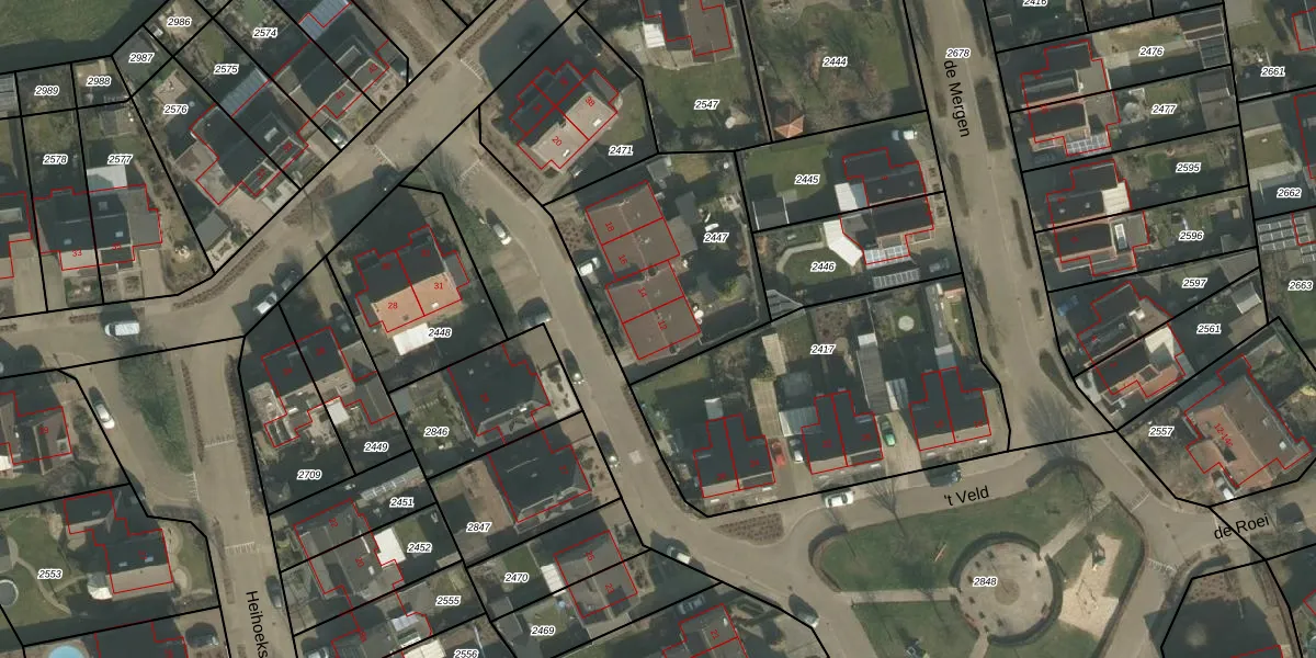Het adres ligt op het perceel VLB00-C-2447, dat zich in de kadastrale gemeente Vierlingsbeek bevindt. Het perceel is kleiner dan gemiddeld in Vierlingsbeek. Het perceel is 793 m² groot, terwijl het gemiddelde ligt op 7833,61 m². De grootste perceeloppervlakte in de kadastrale gemeente is 1,01 km². De kleinste oppervlakte bedraagt 0 m². Er zijn 4 adressen aanwezig op het perceel. De huidige grenzen van het perceel zijn digitaal in de Basisregistratie Kadaster (BRK) geregistreerd op 06-04-2007.