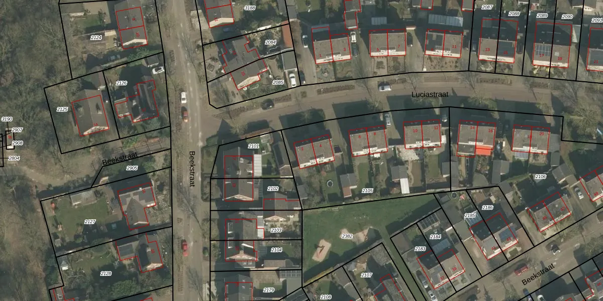 Luciastraat 2 is gelegen op kadastraal perceel VLB00C2105. Deze kadastrale aanduiding is uniek en wordt gebruikt door het Kadaster om eigendomsrechten en andere zakelijke rechten vast te leggen. Het perceel maakt onderdeel uit van de kadastrale gemeente Vierlingsbeek.