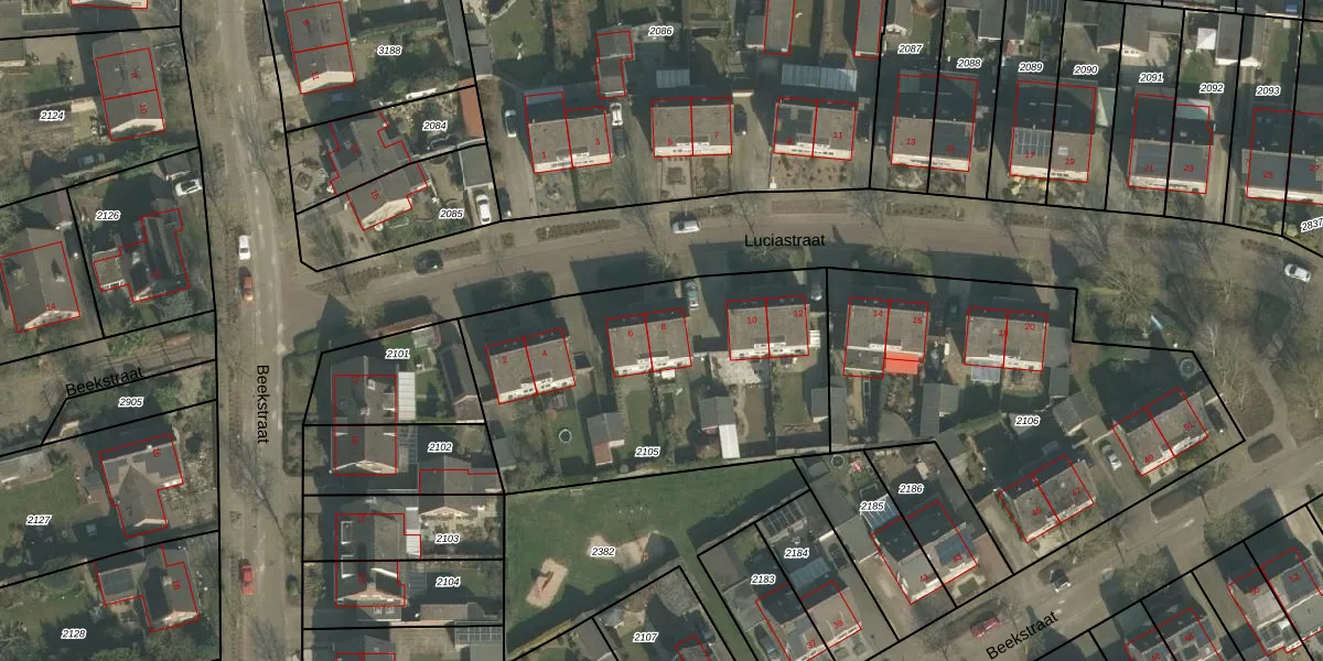 Luciastraat 8 is gelegen op kadastraal perceel VLB00C2105. Deze kadastrale aanduiding is uniek en wordt gebruikt door het Kadaster om eigendomsrechten en andere zakelijke rechten vast te leggen. Het perceel maakt onderdeel uit van de kadastrale gemeente Vierlingsbeek.