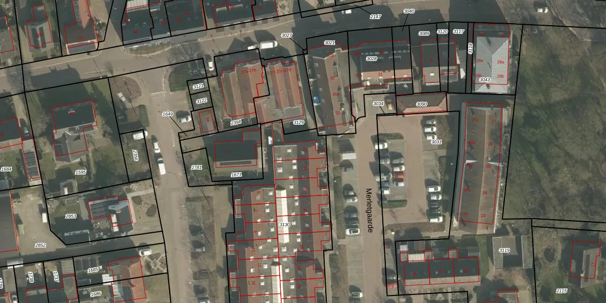 Het perceel waarop Merletgaarde 33 staat heeft een oppervlakte van 1997 m². Dit is een zeer groot perceel. De perceeloppervlakte wordt geregistreerd door het Kadaster. Gedetailleerde informatie over de maten van dit perceel kunt u vinden in het rapport Kadastrale kaart met maatvoering van Merletgaarde 33.