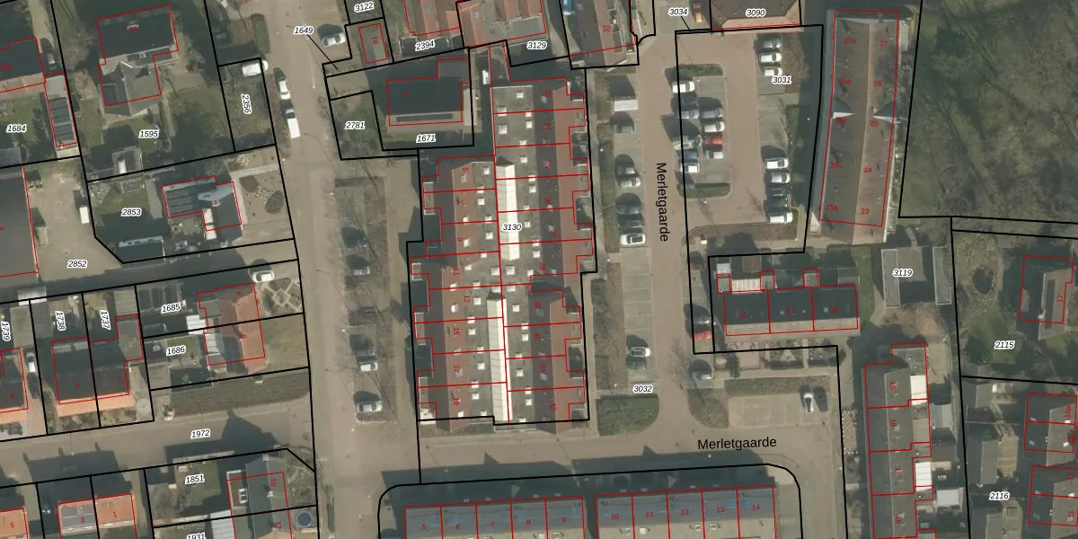 Het perceel waarop Merletgaarde 38 staat heeft een oppervlakte van 1997 m². Dit is een zeer groot perceel. De perceeloppervlakte wordt geregistreerd door het Kadaster. Gedetailleerde informatie over de maten van dit perceel kunt u vinden in het rapport Kadastrale kaart met maatvoering van Merletgaarde 38.