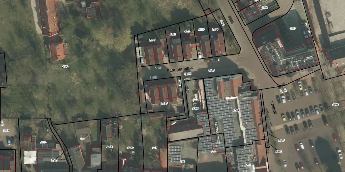 Het perceel waarop Schepenbank 1 staat heeft een oppervlakte van 446 m². Dit is een groot perceel. De perceeloppervlakte wordt geregistreerd door het Kadaster. Gedetailleerde informatie over de maten van dit perceel kunt u vinden in het rapport Kadastrale kaart met maatvoering van Schepenbank 1.