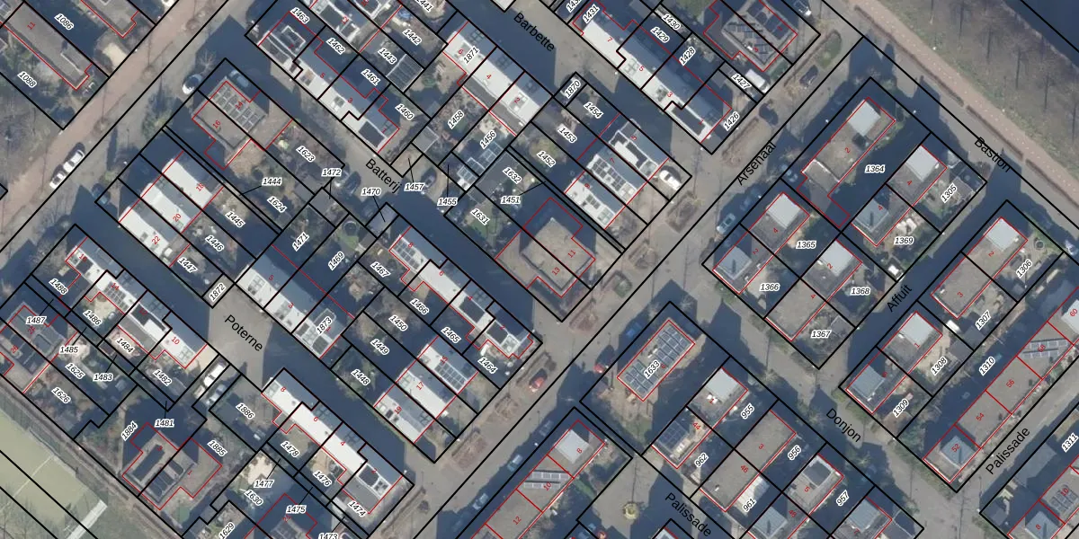 Het perceel waarop Arsenaal 13 staat heeft een oppervlakte van 233 m². Dit is een middelgroot perceel. De perceeloppervlakte wordt geregistreerd door het Kadaster. Gedetailleerde informatie over de maten van dit perceel kunt u vinden in het rapport Kadastrale kaart met maatvoering van Arsenaal 13.
