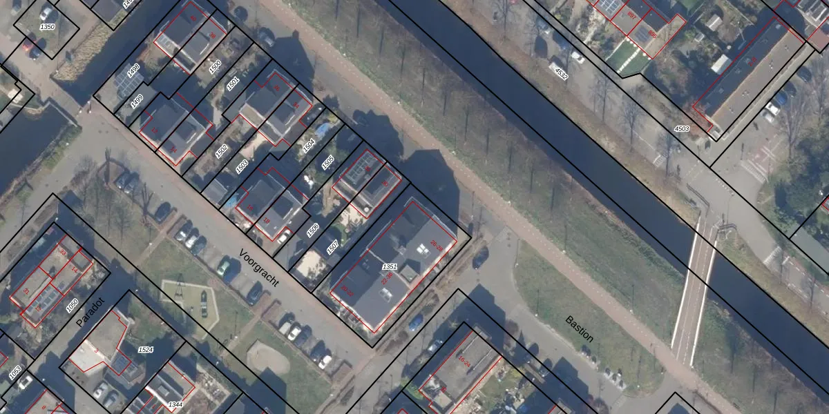 Het perceel waarop Bastion 28 staat heeft een oppervlakte van 709 m². Dit is een groot perceel. De perceeloppervlakte wordt geregistreerd door het Kadaster. Gedetailleerde informatie over de maten van dit perceel kunt u vinden in het rapport Kadastrale kaart met maatvoering van Bastion 28.