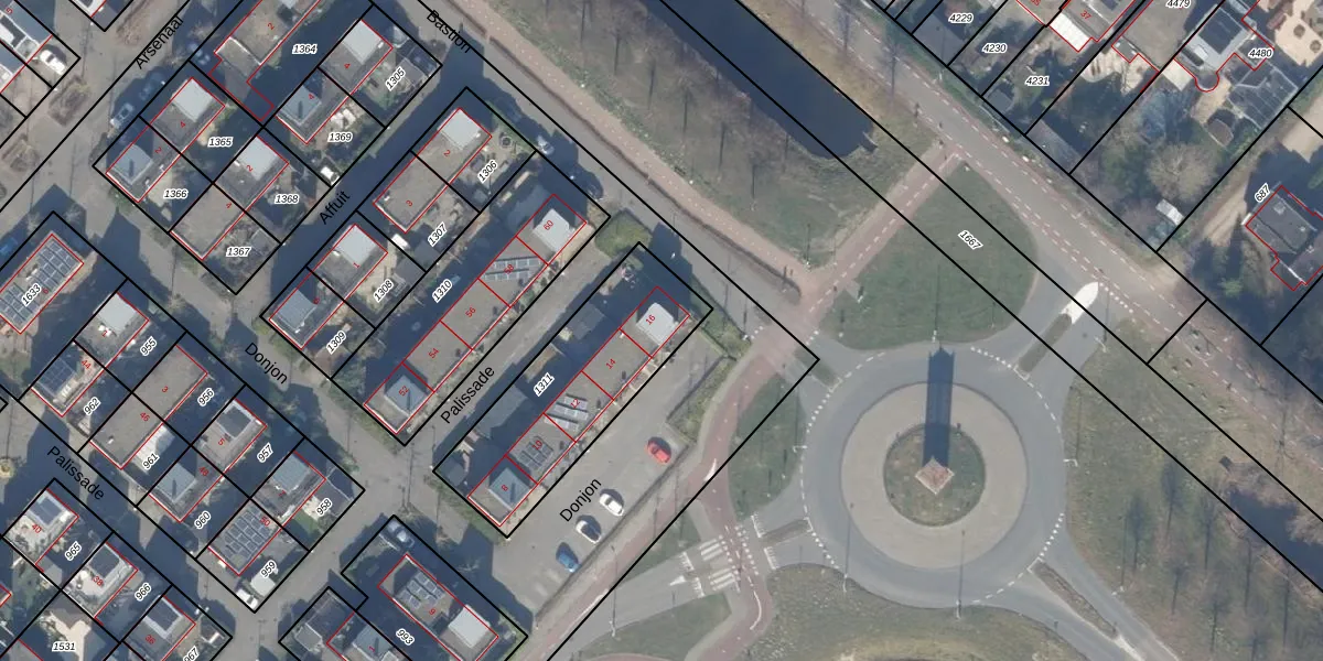 Het perceel waarop Donjon 16 staat heeft een oppervlakte van 700 m². Dit is een groot perceel. De perceeloppervlakte wordt geregistreerd door het Kadaster. Gedetailleerde informatie over de maten van dit perceel kunt u vinden in het rapport Kadastrale kaart met maatvoering van Donjon 16.