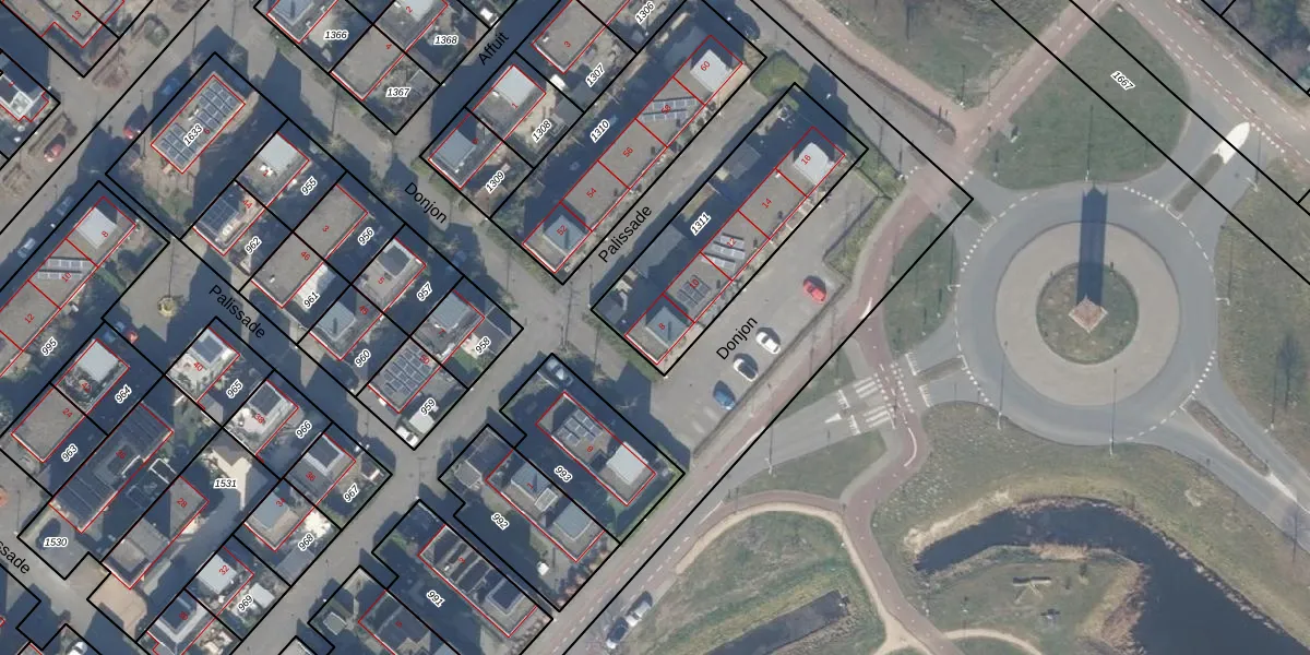 Het perceel waarop Donjon 8 staat heeft een oppervlakte van 700 m². Dit is een groot perceel. De perceeloppervlakte wordt geregistreerd door het Kadaster. Gedetailleerde informatie over de maten van dit perceel kunt u vinden in het rapport Kadastrale kaart met maatvoering van Donjon 8.