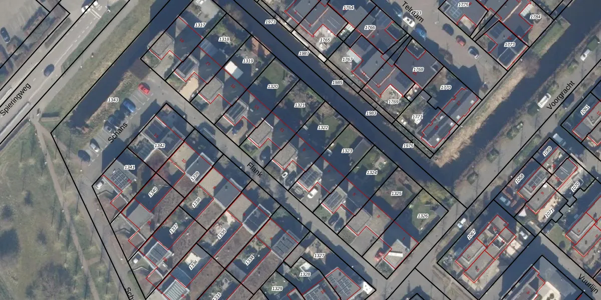 Het perceel waarop Flank 9 staat heeft een oppervlakte van 335 m². Dit is een groot perceel. De perceeloppervlakte wordt geregistreerd door het Kadaster. Gedetailleerde informatie over de maten van dit perceel kunt u vinden in het rapport Kadastrale kaart met maatvoering van Flank 9.