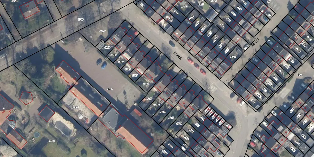 Het perceel waarop Mient 15 staat heeft een oppervlakte van 271 m². Dit is een middelgroot perceel. De perceeloppervlakte wordt geregistreerd door het Kadaster. Gedetailleerde informatie over de maten van dit perceel kunt u vinden in het rapport Kadastrale kaart met maatvoering van Mient 15.