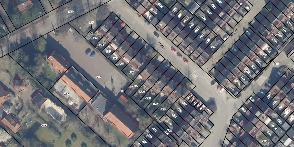 Het perceel waarop Mient 17 staat heeft een oppervlakte van 219 m². Dit is een middelgroot perceel. De perceeloppervlakte wordt geregistreerd door het Kadaster. Gedetailleerde informatie over de maten van dit perceel kunt u vinden in het rapport Kadastrale kaart met maatvoering van Mient 17.