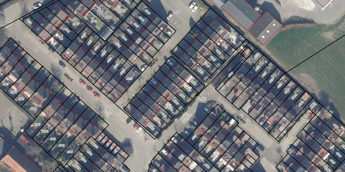 Het perceel waarop Mient 26 staat heeft een oppervlakte van 132 m². Dit is een middelgroot perceel. De perceeloppervlakte wordt geregistreerd door het Kadaster. Gedetailleerde informatie over de maten van dit perceel kunt u vinden in het rapport Kadastrale kaart met maatvoering van Mient 26.