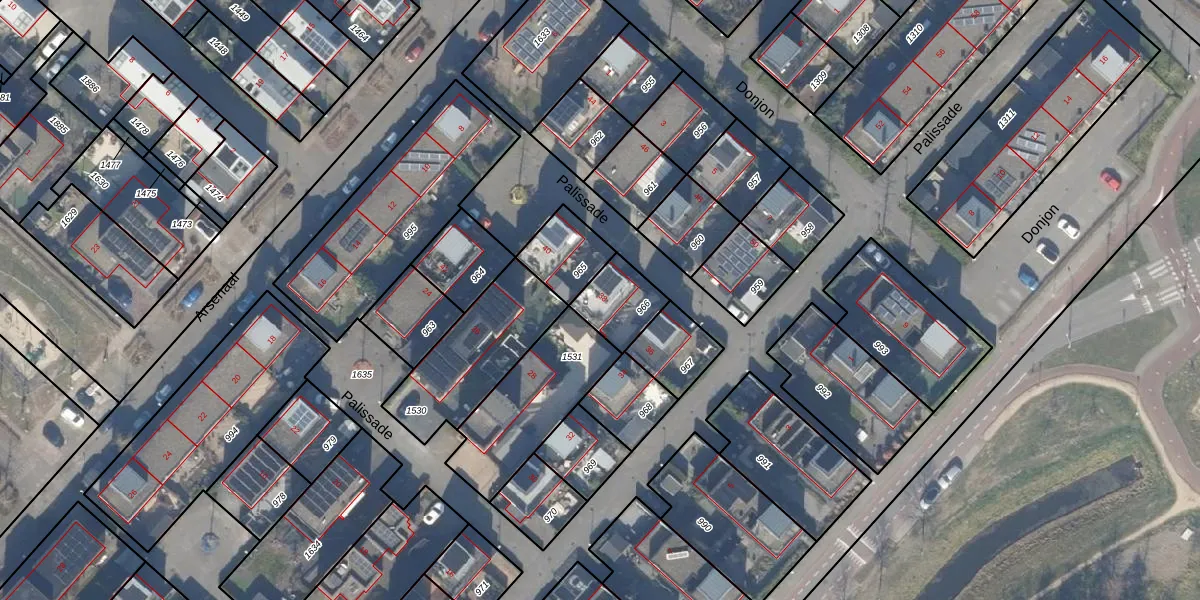 Het perceel waarop Palissade 38 staat heeft een oppervlakte van 143 m². Dit is een middelgroot perceel. De perceeloppervlakte wordt geregistreerd door het Kadaster. Gedetailleerde informatie over de maten van dit perceel kunt u vinden in het rapport Kadastrale kaart met maatvoering van Palissade 38.