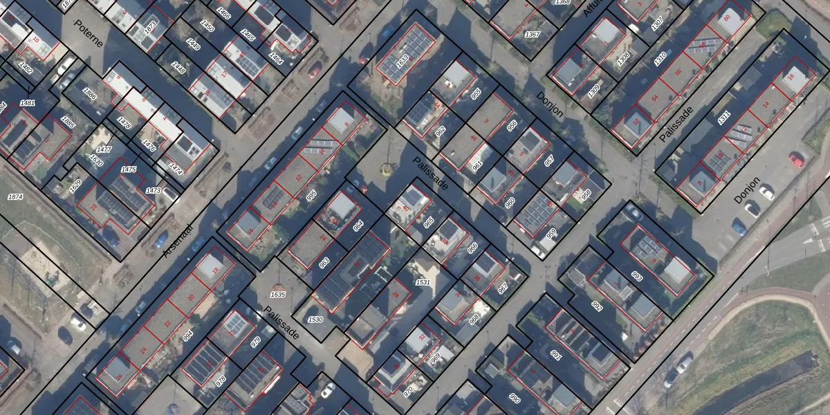 Het perceel waarop Palissade 40 staat heeft een oppervlakte van 143 m². Dit is een middelgroot perceel. De perceeloppervlakte wordt geregistreerd door het Kadaster. Gedetailleerde informatie over de maten van dit perceel kunt u vinden in het rapport Kadastrale kaart met maatvoering van Palissade 40.