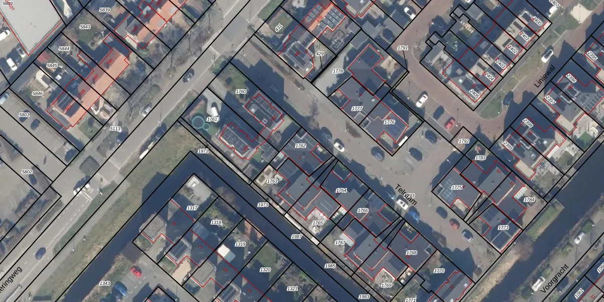 Het perceel waarop Telraam 1 staat heeft een oppervlakte van 164 m². Dit is een middelgroot perceel. De perceeloppervlakte wordt geregistreerd door het Kadaster. Gedetailleerde informatie over de maten van dit perceel kunt u vinden in het rapport Kadastrale kaart met maatvoering van Telraam 1.