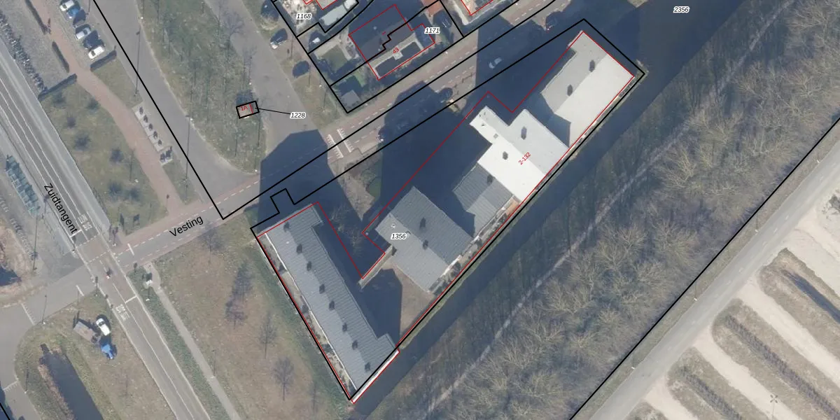 Het perceel waarop Vesting 126 staat heeft een oppervlakte van 3211 m². Dit is een zeer groot perceel. De perceeloppervlakte wordt geregistreerd door het Kadaster. Gedetailleerde informatie over de maten van dit perceel kunt u vinden in het rapport Kadastrale kaart met maatvoering van Vesting 126.