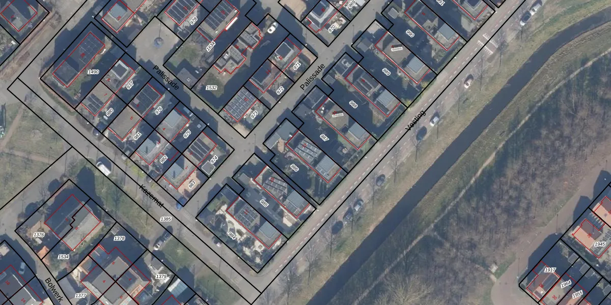 Het perceel waarop Vesting 13 staat heeft een oppervlakte van 365 m². Dit is een groot perceel. De perceeloppervlakte wordt geregistreerd door het Kadaster. Gedetailleerde informatie over de maten van dit perceel kunt u vinden in het rapport Kadastrale kaart met maatvoering van Vesting 13.