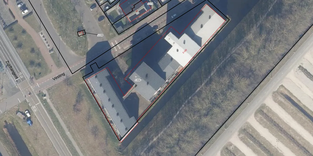 Het perceel waarop Vesting 132 staat heeft een oppervlakte van 3211 m². Dit is een zeer groot perceel. De perceeloppervlakte wordt geregistreerd door het Kadaster. Gedetailleerde informatie over de maten van dit perceel kunt u vinden in het rapport Kadastrale kaart met maatvoering van Vesting 132.