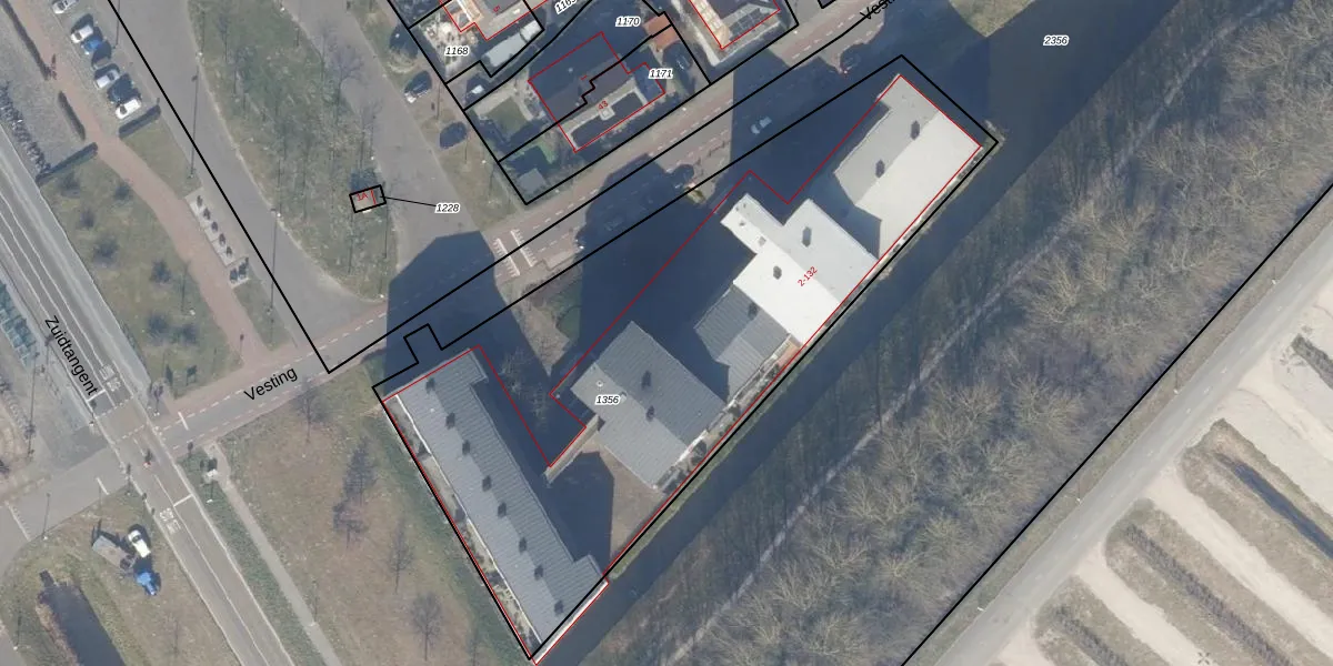 Het perceel waarop Vesting 26 staat heeft een oppervlakte van 3211 m². Dit is een zeer groot perceel. De perceeloppervlakte wordt geregistreerd door het Kadaster. Gedetailleerde informatie over de maten van dit perceel kunt u vinden in het rapport Kadastrale kaart met maatvoering van Vesting 26.