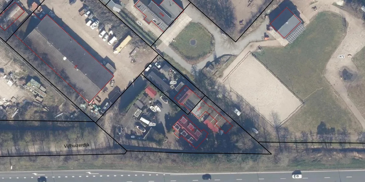 Het perceel waarop Vijfhuizerdijk 156-A staat heeft een oppervlakte van 490 m². Dit is een groot perceel. De perceeloppervlakte wordt geregistreerd door het Kadaster. Gedetailleerde informatie over de maten van dit perceel kunt u vinden in het rapport Kadastrale kaart met maatvoering van Vijfhuizerdijk 156-A.