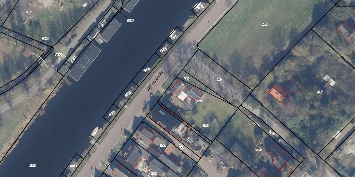 Het perceel waarop Vijfhuizerdijk 202 staat heeft een oppervlakte van 759 m². Dit is een groot perceel. De perceeloppervlakte wordt geregistreerd door het Kadaster. Gedetailleerde informatie over de maten van dit perceel kunt u vinden in het rapport Kadastrale kaart met maatvoering van Vijfhuizerdijk 202.