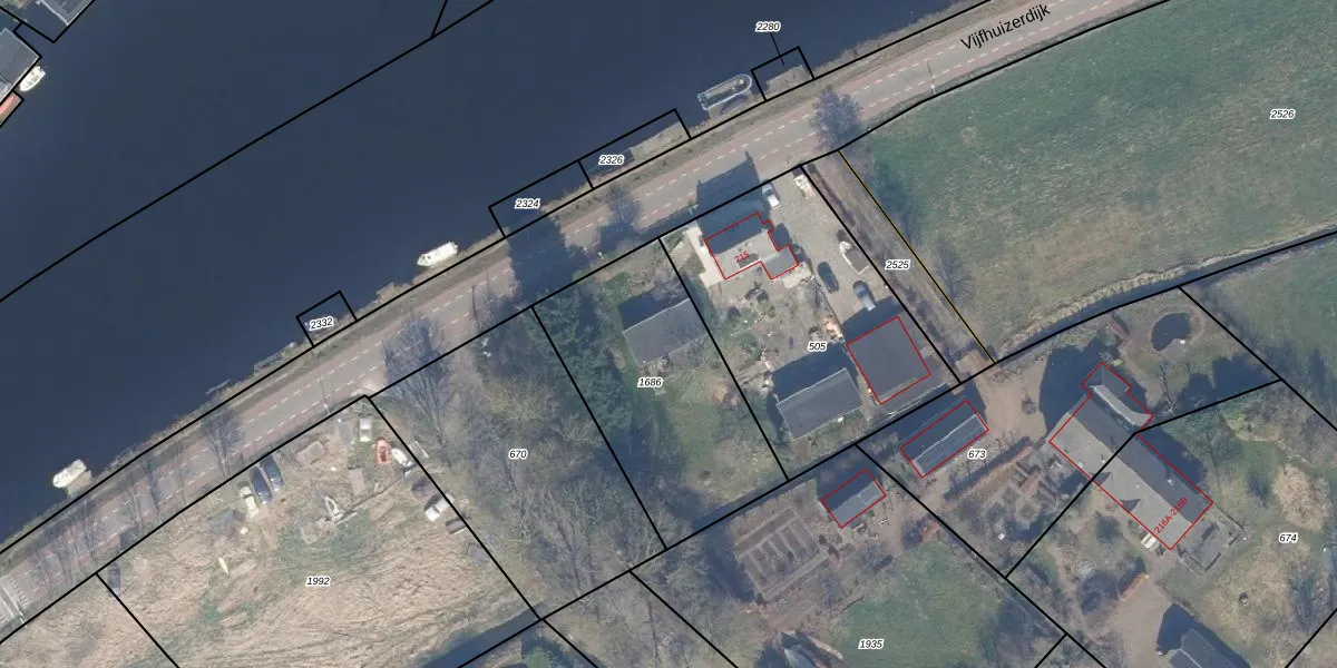 Het perceel waarop Vijfhuizerdijk 215-B-1 staat heeft een oppervlakte van 780 m². Dit is een groot perceel. De perceeloppervlakte wordt geregistreerd door het Kadaster. Gedetailleerde informatie over de maten van dit perceel kunt u vinden in het rapport Kadastrale kaart met maatvoering van Vijfhuizerdijk 215-B-1.