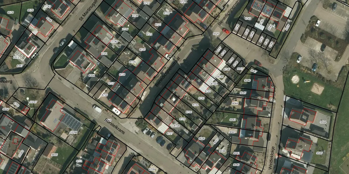 Benedictijnenstraat 9 is gelegen op kadastraal perceel VAA00A8731. Deze kadastrale aanduiding is uniek en wordt gebruikt door het Kadaster om eigendomsrechten en andere zakelijke rechten vast te leggen. Het perceel maakt onderdeel uit van de kadastrale gemeente Vaals.