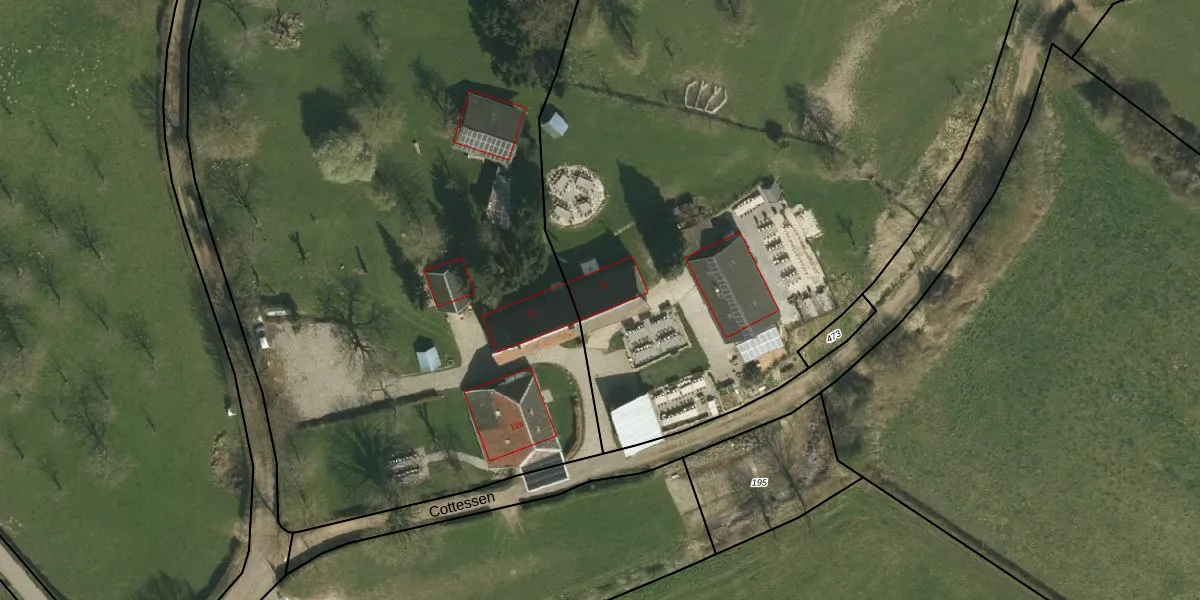 Cottessen 13 is gelegen op kadastraal perceel VAA00G187. Deze kadastrale aanduiding is uniek en wordt gebruikt door het Kadaster om eigendomsrechten en andere zakelijke rechten vast te leggen. Het perceel maakt onderdeel uit van de kadastrale gemeente Vaals.
