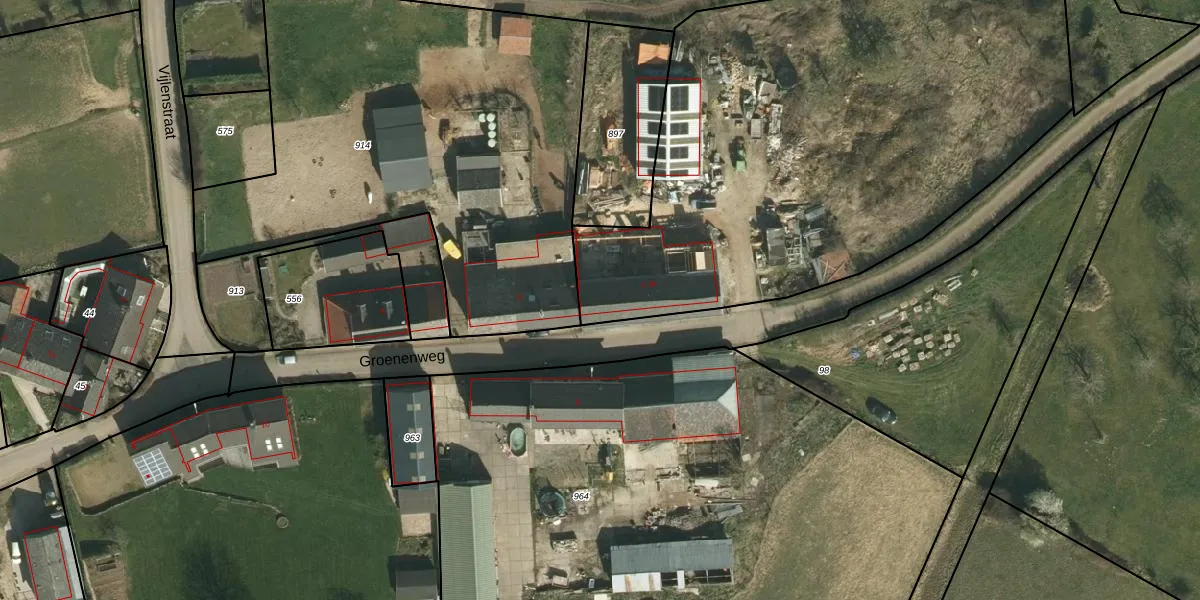 Groenenweg 1-b is gelegen op kadastraal perceel VAA00F900. Deze kadastrale aanduiding is uniek en wordt gebruikt door het Kadaster om eigendomsrechten en andere zakelijke rechten vast te leggen. Het perceel maakt onderdeel uit van de kadastrale gemeente Vaals.