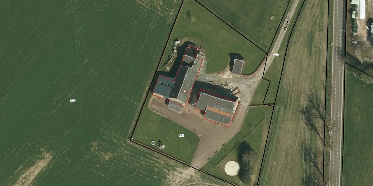 Het perceel waarop Harles 1 staat heeft een oppervlakte van 5000 m². Dit is een zeer groot perceel. De perceeloppervlakte wordt geregistreerd door het Kadaster. Gedetailleerde informatie over de maten van dit perceel kunt u vinden in het rapport Kadastrale kaart met maatvoering van Harles 1.