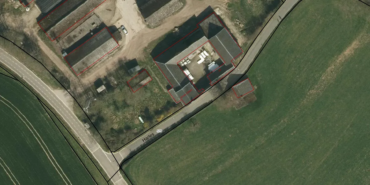 Het perceel waarop Harles 22-rw1 staat heeft een oppervlakte van 1,7 ha. Dit is een zeer groot perceel. De perceeloppervlakte wordt geregistreerd door het Kadaster. Gedetailleerde informatie over de maten van dit perceel kunt u vinden in het rapport Kadastrale kaart met maatvoering van Harles 22-rw1.