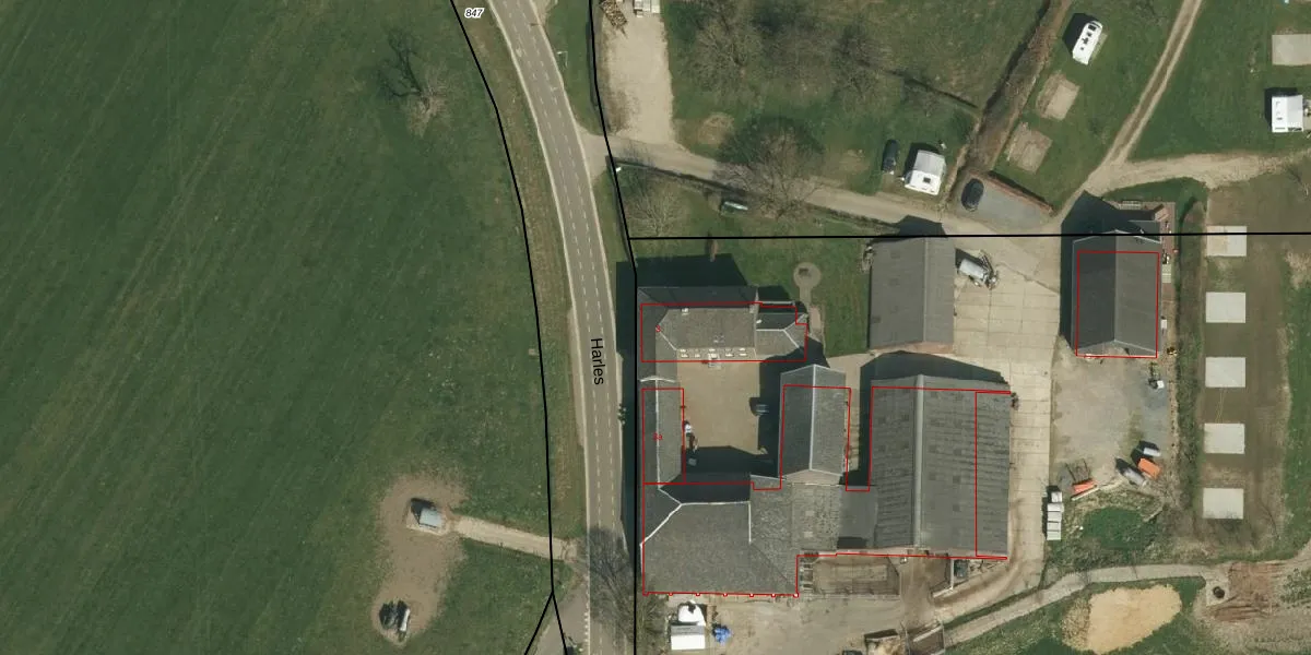Het perceel waarop Harles 3 staat heeft een oppervlakte van 2,0 ha. Dit is een zeer groot perceel. De perceeloppervlakte wordt geregistreerd door het Kadaster. Gedetailleerde informatie over de maten van dit perceel kunt u vinden in het rapport Kadastrale kaart met maatvoering van Harles 3.