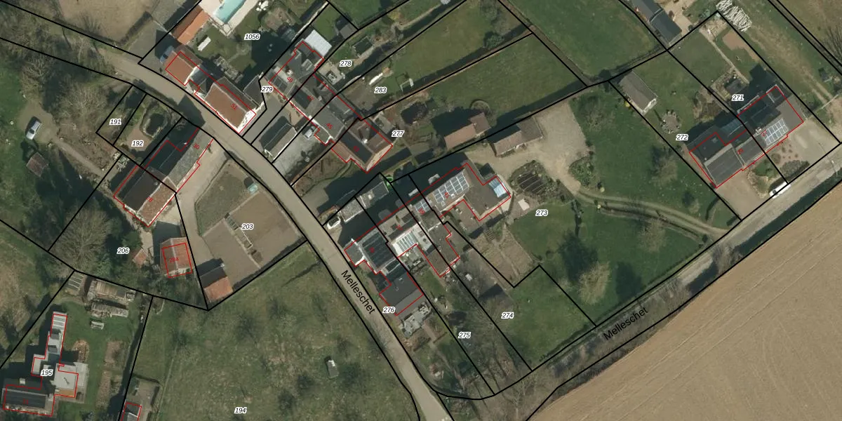 Melleschet 39 is gelegen op kadastraal perceel VAA00F274. Deze kadastrale aanduiding is uniek en wordt gebruikt door het Kadaster om eigendomsrechten en andere zakelijke rechten vast te leggen. Het perceel maakt onderdeel uit van de kadastrale gemeente Vaals.