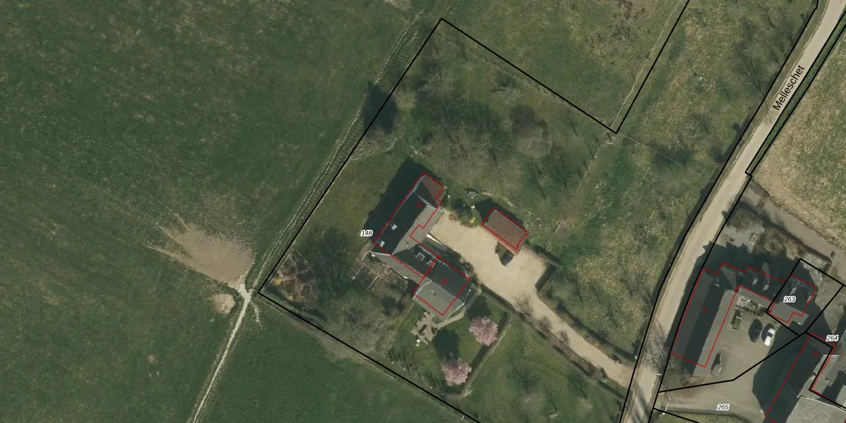 Het perceel waarop Melleschet 58 staat heeft een oppervlakte van 7750 m². Dit is een zeer groot perceel. De perceeloppervlakte wordt geregistreerd door het Kadaster. Gedetailleerde informatie over de maten van dit perceel kunt u vinden in het rapport Kadastrale kaart met maatvoering van Melleschet 58.