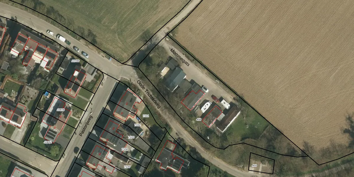 Het perceel waarop Mommegats 1 staat heeft een oppervlakte van 2435 m². Dit is een zeer groot perceel. De perceeloppervlakte wordt geregistreerd door het Kadaster. Gedetailleerde informatie over de maten van dit perceel kunt u vinden in het rapport Kadastrale kaart met maatvoering van Mommegats 1.