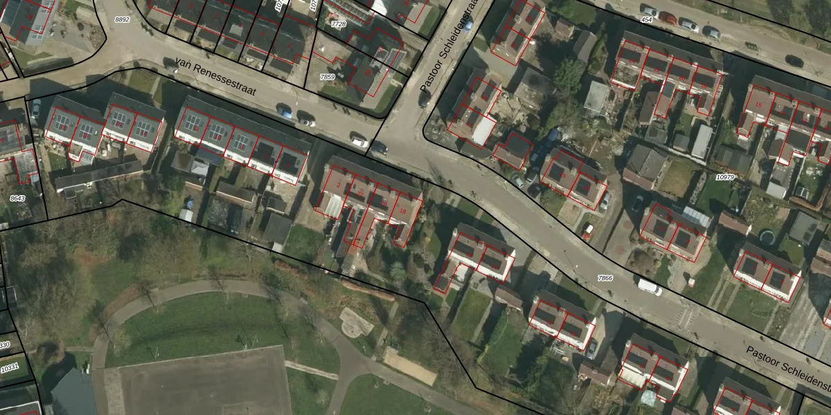 Het perceel waarop Pastoor Schleidenstraat 18 staat heeft een oppervlakte van 6326 m². Dit is een zeer groot perceel. De perceeloppervlakte wordt geregistreerd door het Kadaster. Gedetailleerde informatie over de maten van dit perceel kunt u vinden in het rapport Kadastrale kaart met maatvoering van Pastoor Schleidenstraat 18.