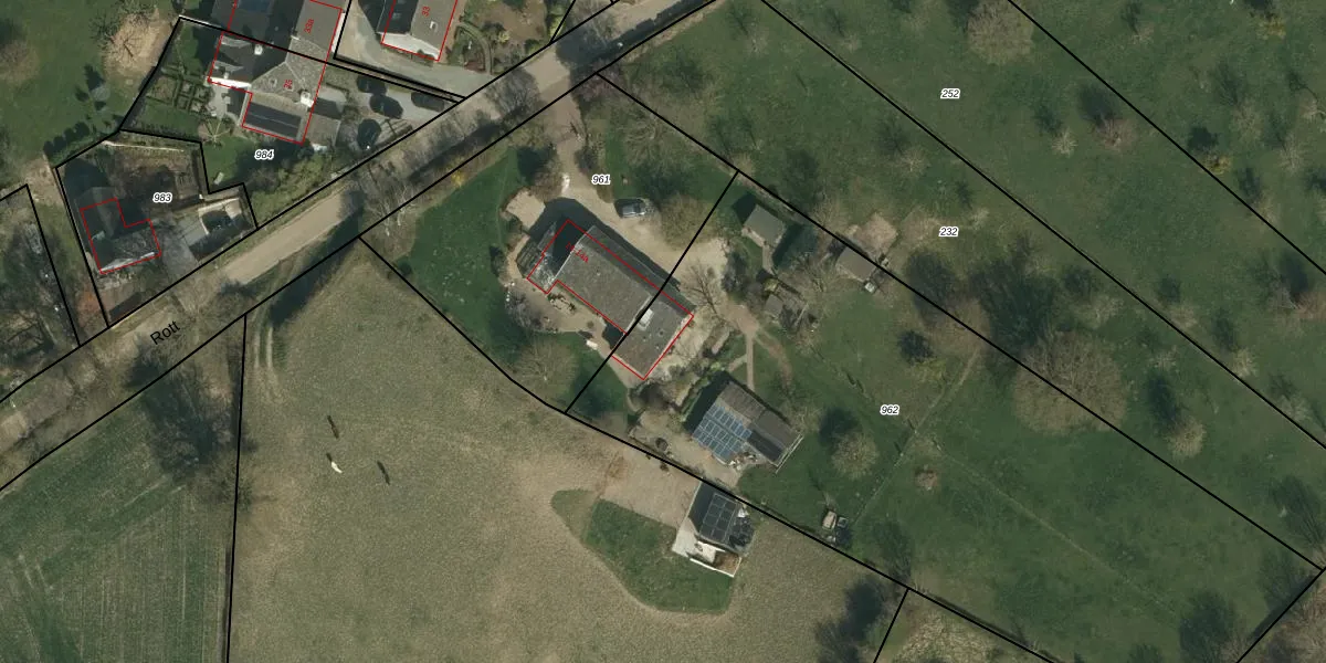 Het perceel waarop Rott 14-a staat heeft een oppervlakte van 3830 m². Dit is een zeer groot perceel. De perceeloppervlakte wordt geregistreerd door het Kadaster. Gedetailleerde informatie over de maten van dit perceel kunt u vinden in het rapport Kadastrale kaart met maatvoering van Rott 14-a.