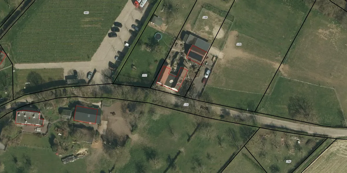 Het perceel waarop Rott 17 staat heeft een oppervlakte van 1610 m². Dit is een zeer groot perceel. De perceeloppervlakte wordt geregistreerd door het Kadaster. Gedetailleerde informatie over de maten van dit perceel kunt u vinden in het rapport Kadastrale kaart met maatvoering van Rott 17.