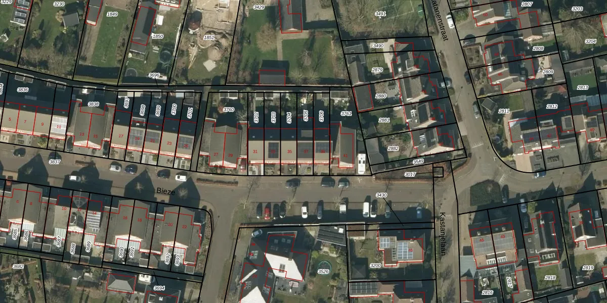 Het perceel waarop Bieze 37 staat heeft een oppervlakte van 148 m². Dit is een middelgroot perceel. De perceeloppervlakte wordt geregistreerd door het Kadaster. Gedetailleerde informatie over de maten van dit perceel kunt u vinden in het rapport Kadastrale kaart met maatvoering van Bieze 37.