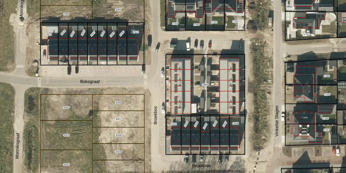 Het perceel waarop het adres ligt is NLD03-E-2869. De afkorting 'NLD03' staat voor kadastrale gemeente Nuland. De gemiddelde perceelgrootte in Nuland is 4960,97 m². Dit perceel is kleiner: de perceeloppervlakte bedraagt 1595 m². Het grootste perceel in de kadastrale gemeente is 39,3 ha. Het kleinste perceel heeft een oppervlakte van 0 m². Op het perceel liggen in totaal 10 adressen. In de Basisregistratie Kadaster (BRK) werden de grenzen van het perceel geregistreerd op 19-12-2025.