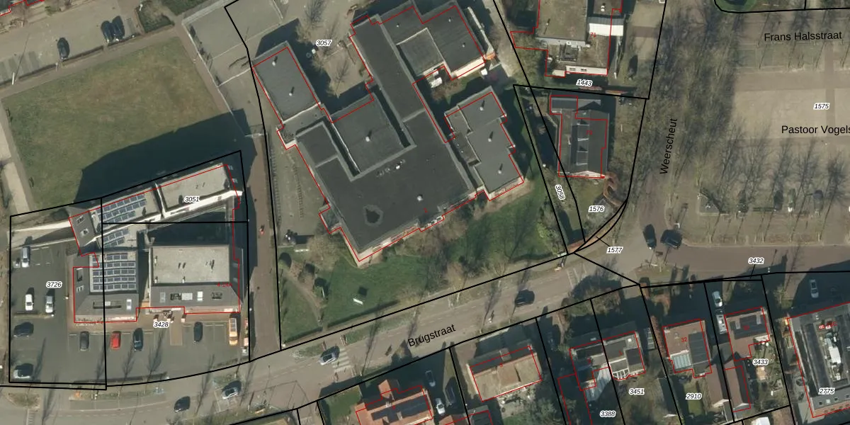 Het perceel waarop Brugstraat 2 staat heeft een oppervlakte van 5250 m². Dit is een zeer groot perceel. De perceeloppervlakte wordt geregistreerd door het Kadaster. Gedetailleerde informatie over de maten van dit perceel kunt u vinden in het rapport Kadastrale kaart met maatvoering van Brugstraat 2.