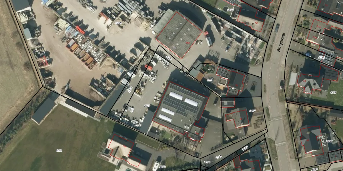 Brugstraat 72-D is gelegen op kadastraal perceel NLD03C3876. Deze kadastrale aanduiding is uniek en wordt gebruikt door het Kadaster om eigendomsrechten en andere zakelijke rechten vast te leggen. Het perceel maakt onderdeel uit van de kadastrale gemeente Nuland.
