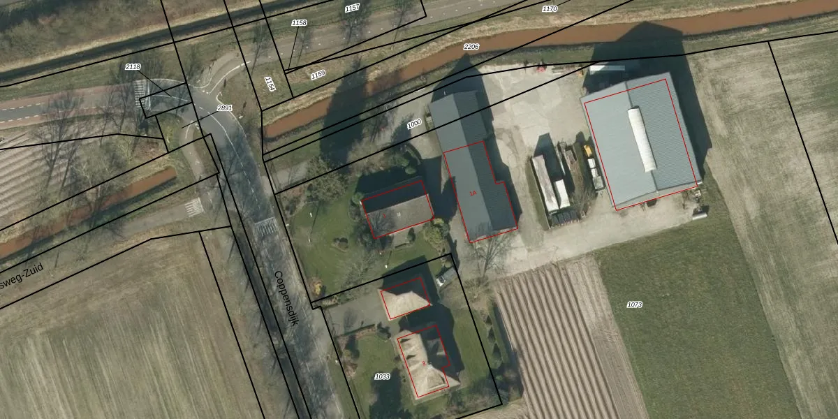 Het perceel waarop Coppensdijk 1 staat heeft een oppervlakte van 1,4 ha. Dit is een zeer groot perceel. De perceeloppervlakte wordt geregistreerd door het Kadaster. Gedetailleerde informatie over de maten van dit perceel kunt u vinden in het rapport Kadastrale kaart met maatvoering van Coppensdijk 1.