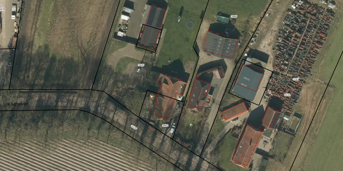 Kaathoven 10 is gelegen op kadastraal perceel NLD03C3544. Deze kadastrale aanduiding is uniek en wordt gebruikt door het Kadaster om eigendomsrechten en andere zakelijke rechten vast te leggen. Het perceel maakt onderdeel uit van de kadastrale gemeente Nuland.