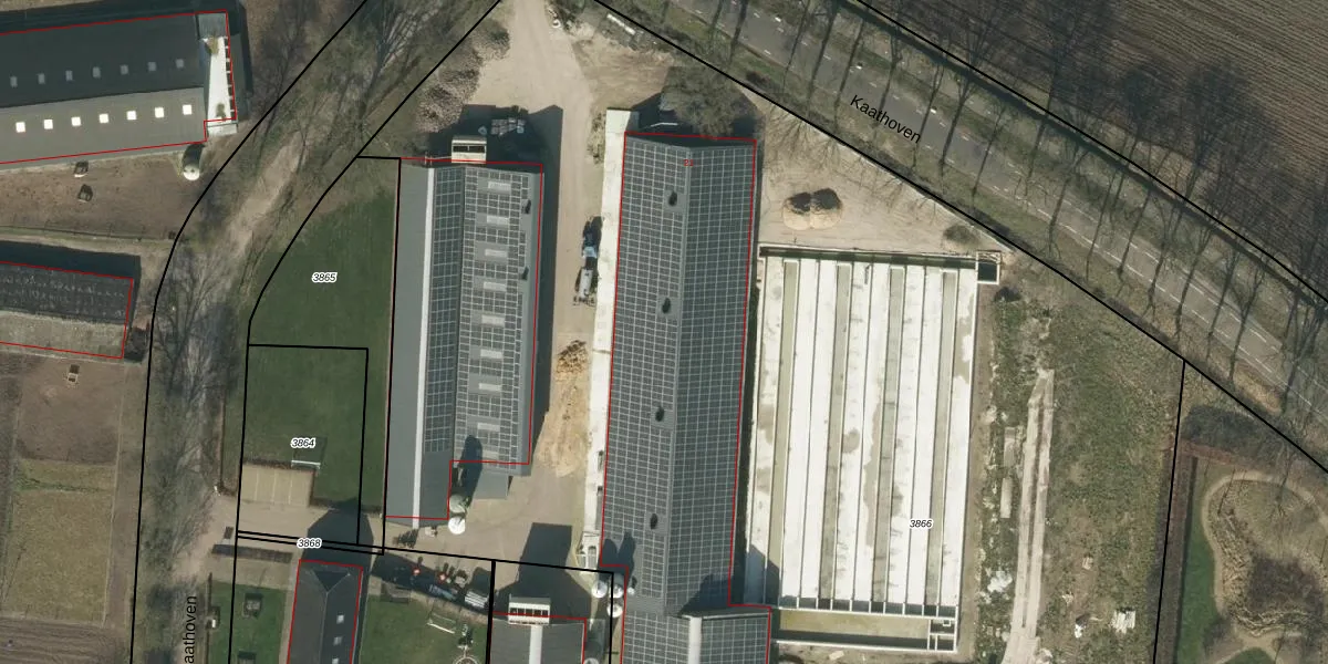 Het perceel waarop Kaathoven 21 staat heeft een oppervlakte van 1,2 ha. Dit is een zeer groot perceel. De perceeloppervlakte wordt geregistreerd door het Kadaster. Gedetailleerde informatie over de maten van dit perceel kunt u vinden in het rapport Kadastrale kaart met maatvoering van Kaathoven 21.