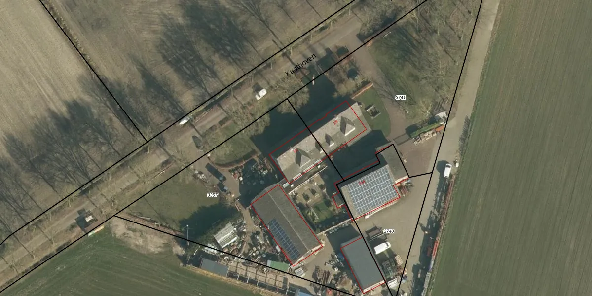 Het perceel waarop Kaathoven 31 staat heeft een oppervlakte van 2935 m². Dit is een zeer groot perceel. De perceeloppervlakte wordt geregistreerd door het Kadaster. Gedetailleerde informatie over de maten van dit perceel kunt u vinden in het rapport Kadastrale kaart met maatvoering van Kaathoven 31.