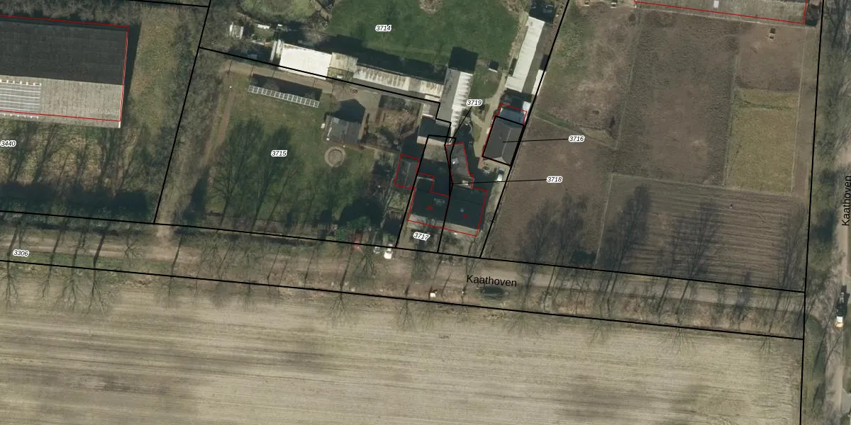 Kaathoven 39 is gelegen op kadastraal perceel NLD03C3717. Deze kadastrale aanduiding is uniek en wordt gebruikt door het Kadaster om eigendomsrechten en andere zakelijke rechten vast te leggen. Het perceel maakt onderdeel uit van de kadastrale gemeente Nuland.