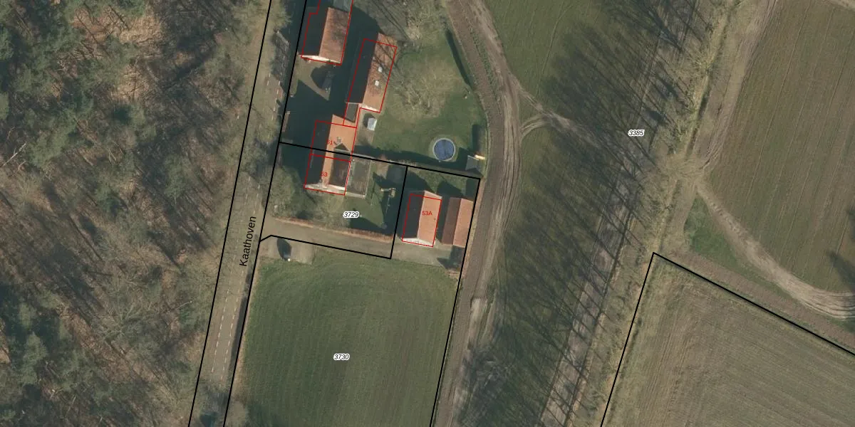 Kaathoven 53-A is gelegen op kadastraal perceel NLD03C3730. Deze kadastrale aanduiding is uniek en wordt gebruikt door het Kadaster om eigendomsrechten en andere zakelijke rechten vast te leggen. Het perceel maakt onderdeel uit van de kadastrale gemeente Nuland.