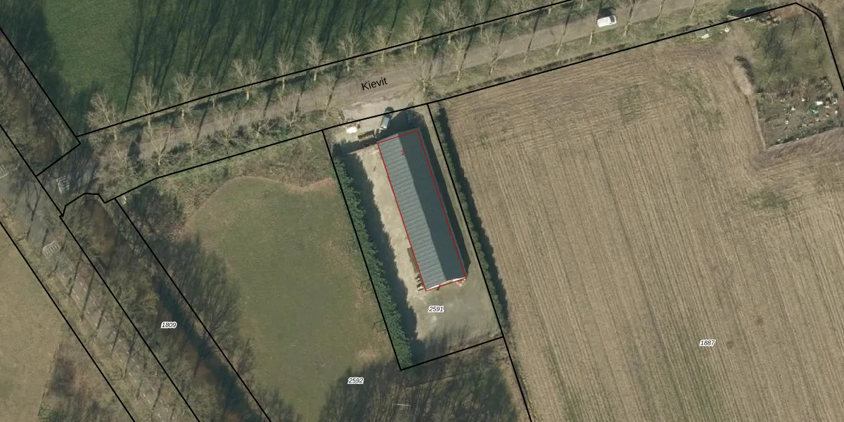 Kievit 2 is gelegen op kadastraal perceel NLD03E2591. Deze kadastrale aanduiding is uniek en wordt gebruikt door het Kadaster om eigendomsrechten en andere zakelijke rechten vast te leggen. Het perceel maakt onderdeel uit van de kadastrale gemeente Nuland.