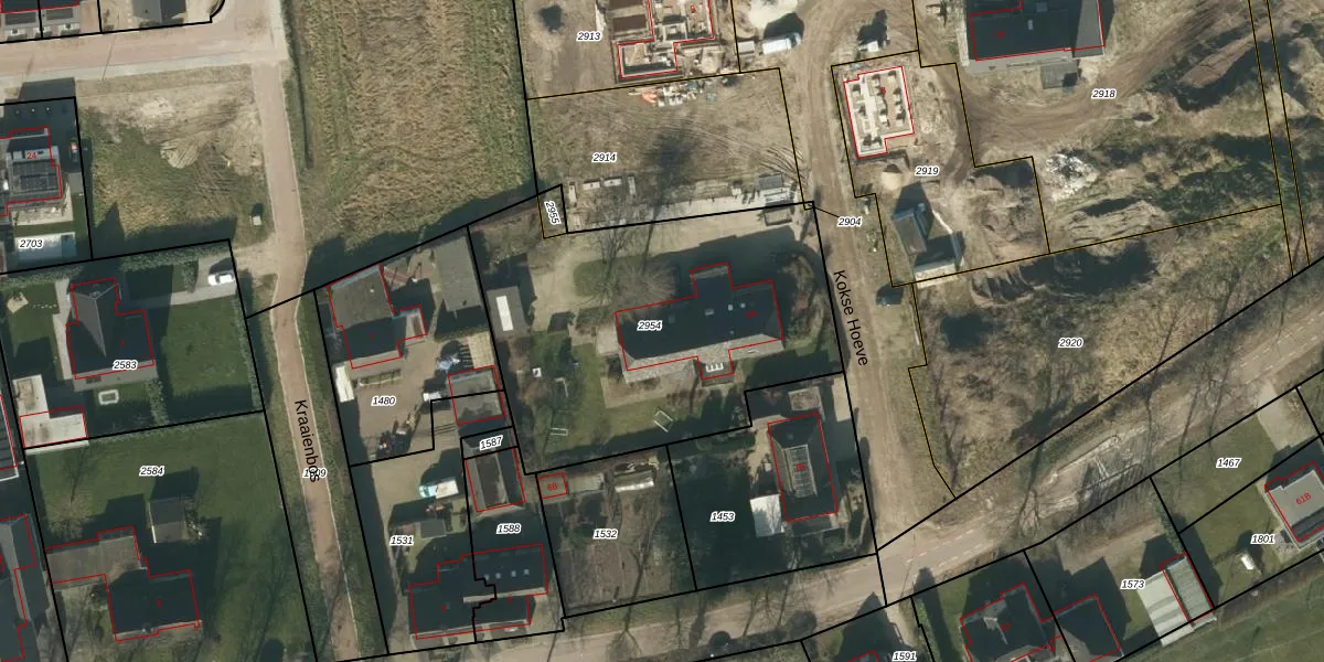 Het perceel waarop Kokse Hoeve 5 staat heeft een oppervlakte van 1678 m². Dit is een zeer groot perceel. De perceeloppervlakte wordt geregistreerd door het Kadaster. Gedetailleerde informatie over de maten van dit perceel kunt u vinden in het rapport Kadastrale kaart met maatvoering van Kokse Hoeve 5.